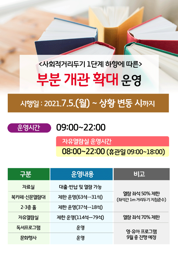 부분 개관 확대 운영 7.5.(월)부터 상황 변동 시 까지