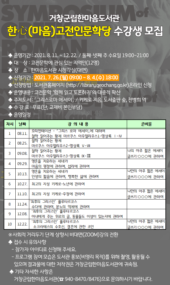 운영기간 : 2021.8.11.~12.22. / 둘째·넷째 주 수 요일 19:00~21:00