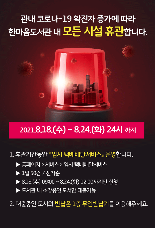 한마음도서관 전면 휴관 (8.18~8.24까지)