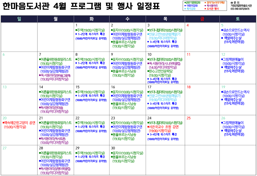 한마음도서관 기간제근로자(주말근무) 채용 공고