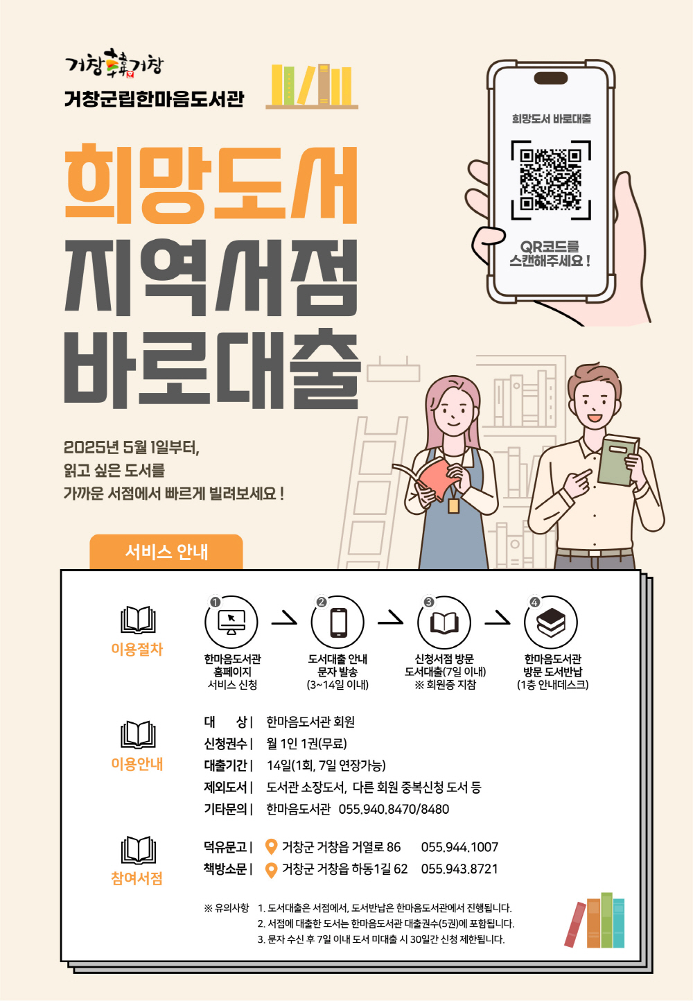 희망도서 지역서점 바로대출 서비스 시행 안내