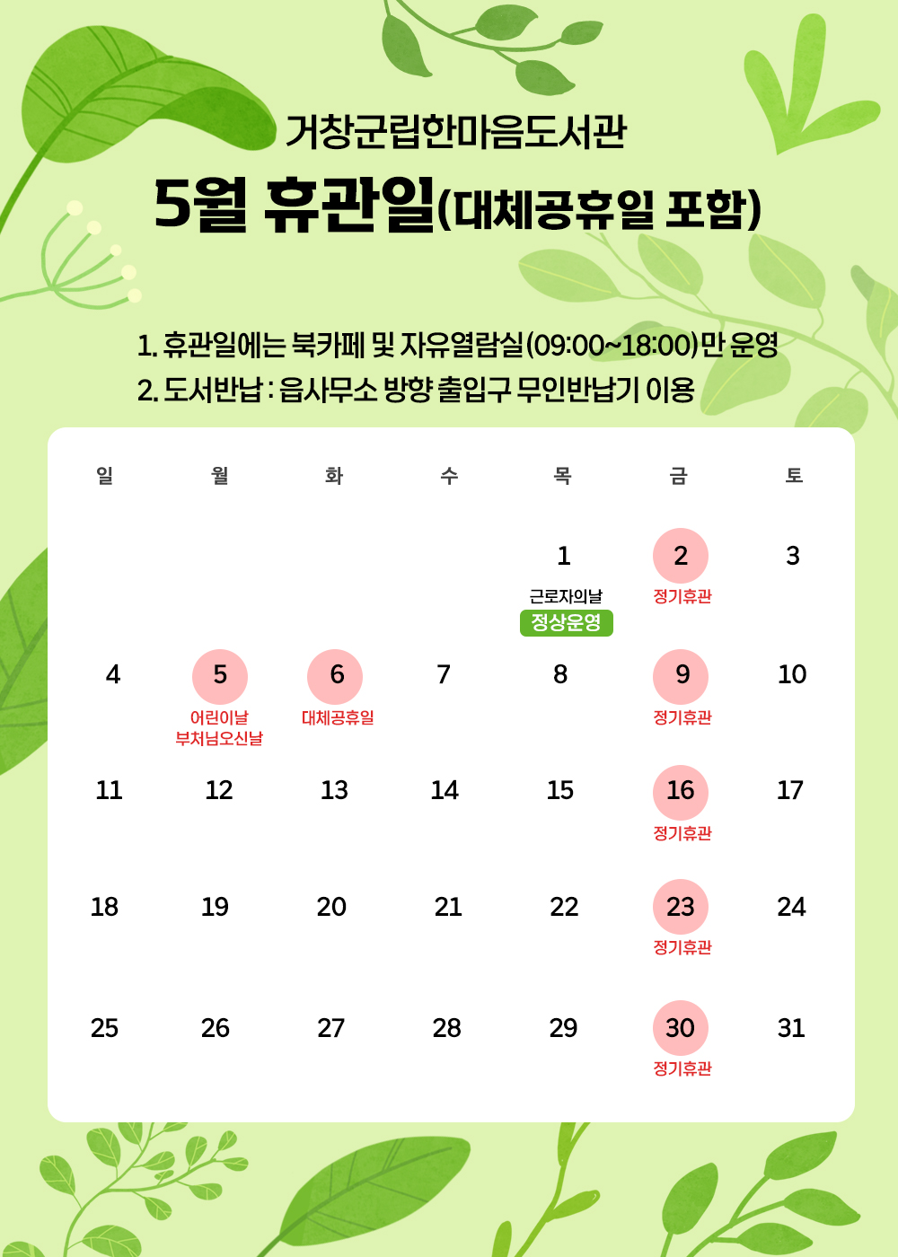 한마음도서관 기간제근로자(주말근무) 채용 공고
