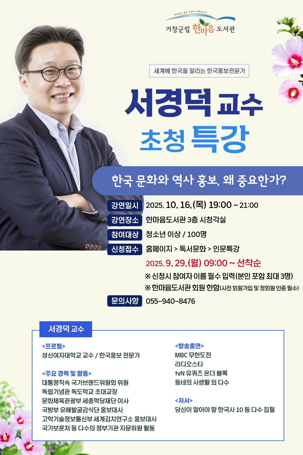 · 강연내용 : 한국 문화와 역사 홍보, 왜 중요한가?